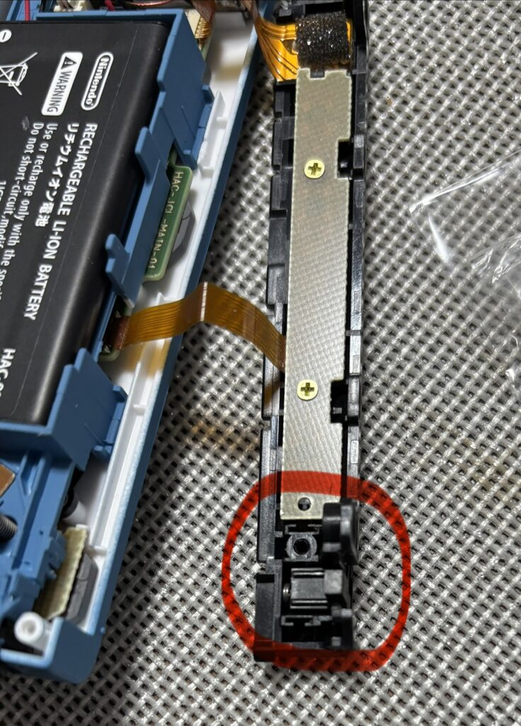 Joy-Conを本体レールに固定するための小さなプラスチックパーツです。